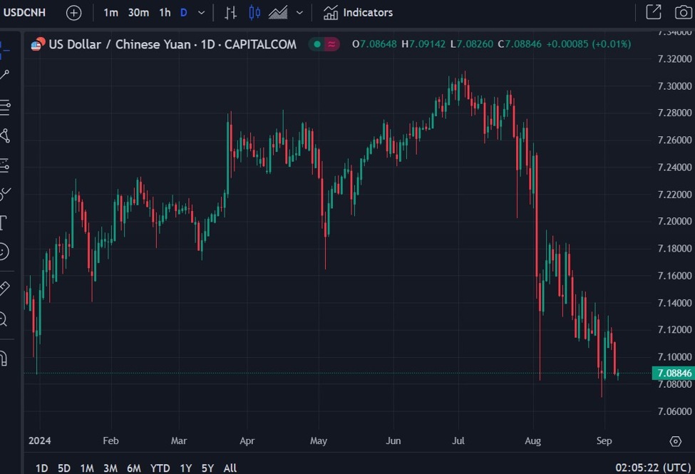 Update USD/CNH (the offshore yuan – its strengthened since July):
