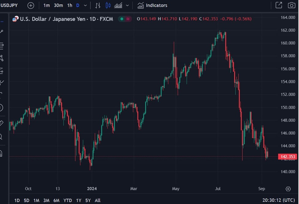 Meanwhile, yen is still adding on points, with USD/JPY back to lows since after that July meeting: