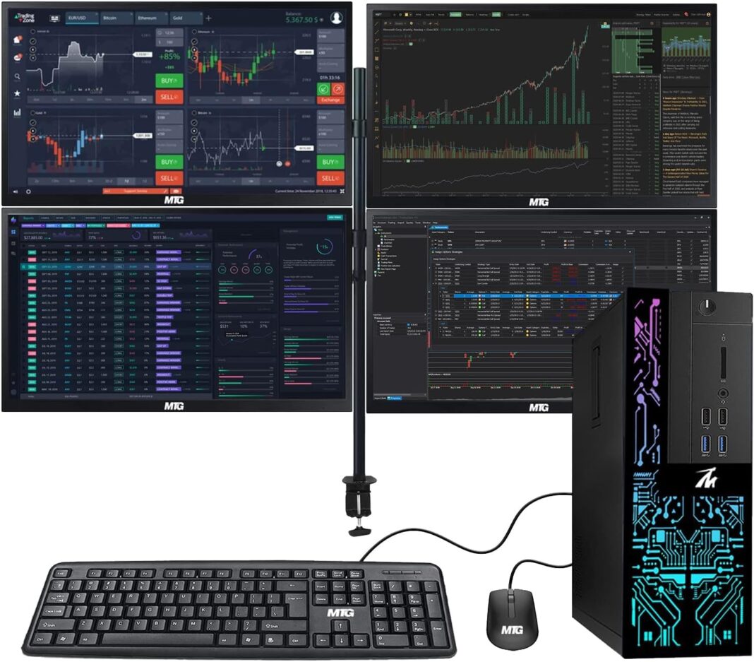 4 x New 24” monitor 1080p, also known as Full HD or FHD (full high definition), is a very common display resolution of 1920 x 1080 pixels. And You get excellent clarity and picture balance whether trading, gaming, browsing the internet, writing, reading, or posting images.