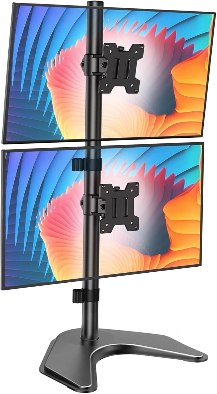 Save Space: Ready to reclaim your desk? This vertical monitor stand stacks your screens on one stand, freeing up tons of space for your coffee, gadgets, or the occasional midday snack. Minimal clutter, maximum style!