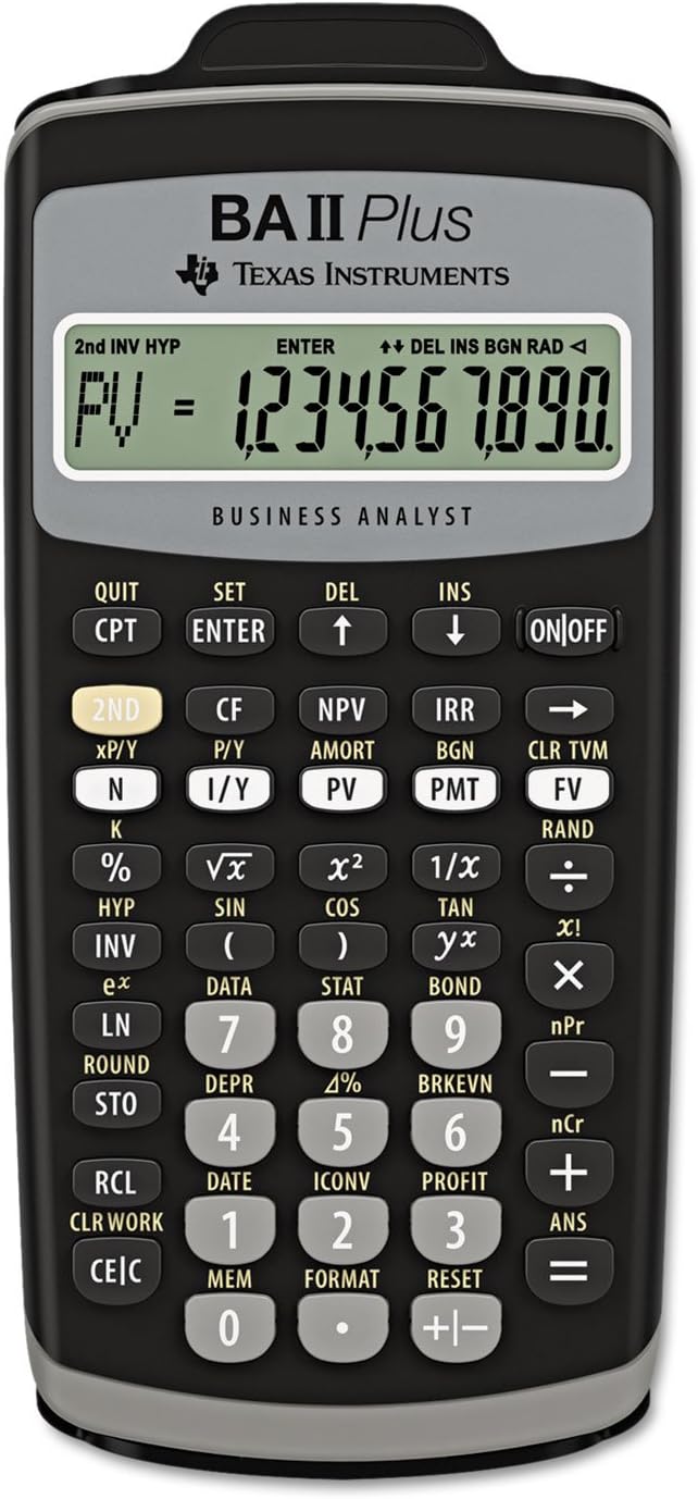 Popular financial calculator for business professionals and students. Ideal for applications in finance, accounting, economics, investments and statistics. Prompted display guides you through financial calculations showing current variable and label. Auto power down feature.