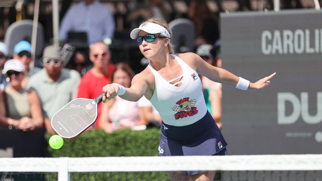 NEW YORK CITY, NY – SEPTEMBER 21: Anna Leigh Waters of the New Jersey Fives rallies the ball during a Major League Pickleball match on September 21, 2024 at Wollman Rink in New York, New York. (Photo by Andrew Mordzynski/Icon Sportswire via Getty Images)