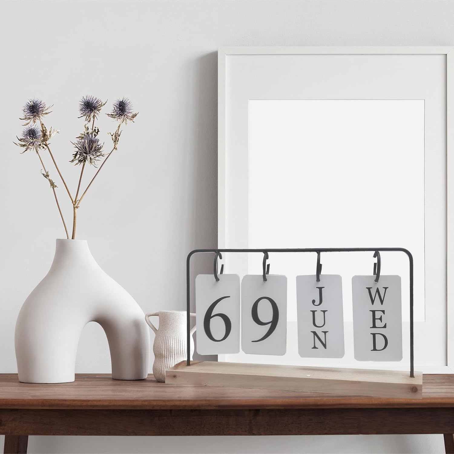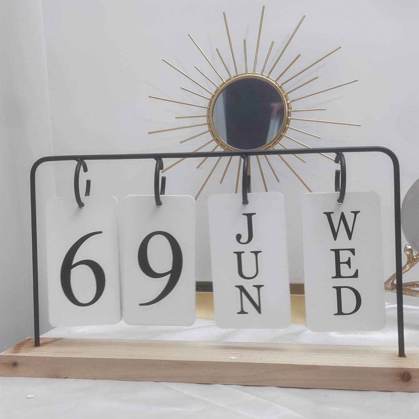 Versatile Design: This perpetual desk calendar features a sleek wooden base with a metal wire frame to display the current date using interchangeable cardboard.