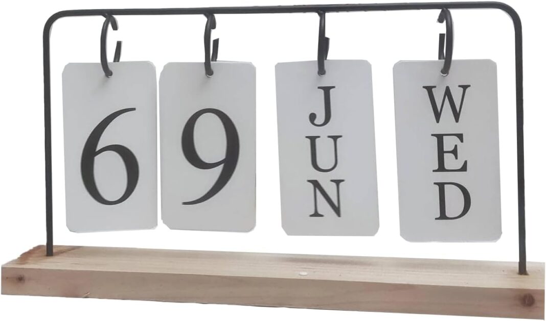 Versatile Design: This perpetual desk calendar features a sleek wooden base with a metal wire frame to display the current date using interchangeable cardboard.