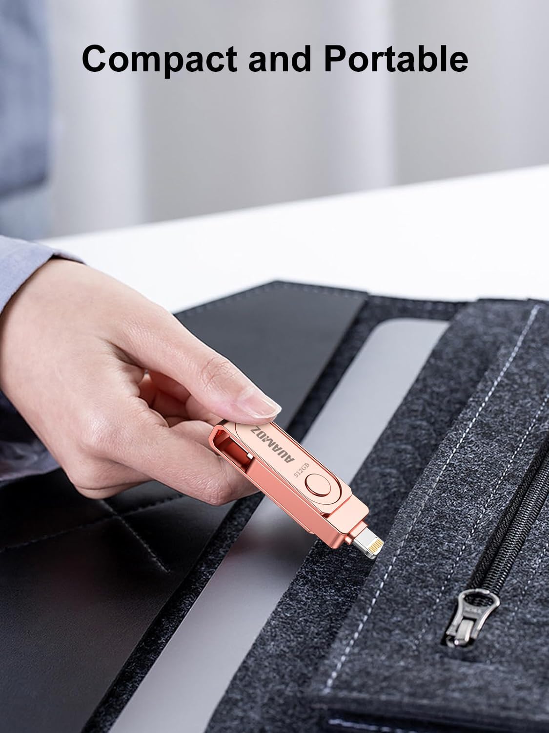 【High Compatibility】The Phone thumb drive is designed for use with a wide range of devices, including iPhone 16, 16 Plus, 16 Pro, 16 Pro Max, 15, 15 Plus, 15 Pro, 15 Pro Max, iPhone 14, 14 Pro, 14 Pro Max, 14 Plus, iPhone 13, 13 Pro max, 13 Pro, 13 mini, 12 Pro max, 12 Pro, 12, 12 mini, 11 Pro max, 11 Pro, 11, XS MAX, XS, XR, X, 8, 7, 6, 6s, 5s (System Version 8.2 Or higher). The photo stick supports Android smartphones (Need to open OTG function). Our USB storage drives also support computers and other devices with USB-C ports.