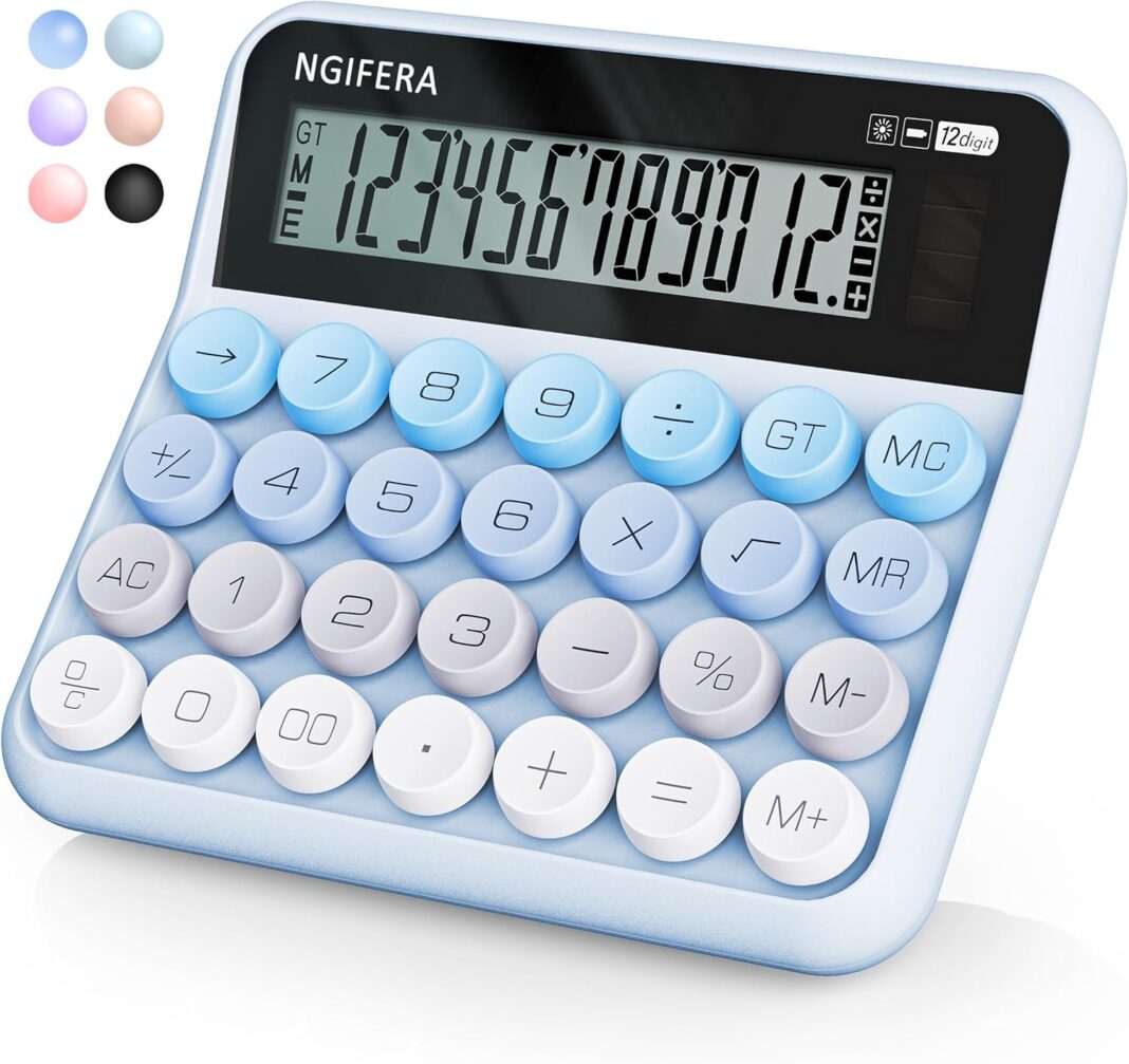 CLICKING SOUND: The key operation is fast and accurate, bringing a pleasant experience. When touched, the keys produce a uniquely addictive ‘click’ sound. If you need a quiet calculator, sorry, this one may not be suitable! Designed like a large button with multiple color options available. Equipped with a large LCD screen, displaying 12 digits and mathematical symbols, designed at a 15-degree ergonomic angle for easier reading, this mechanical switch calculator enhances user comfort.