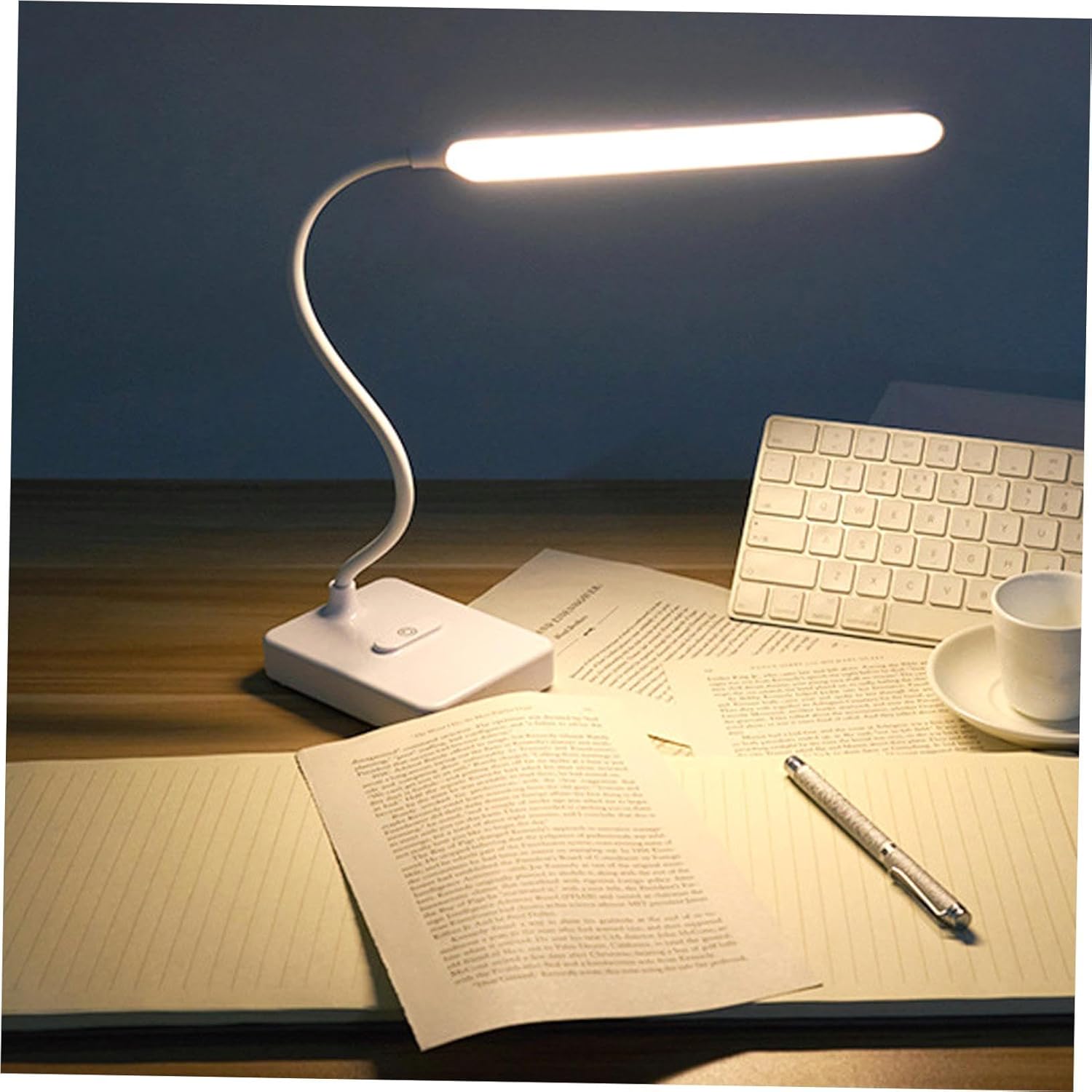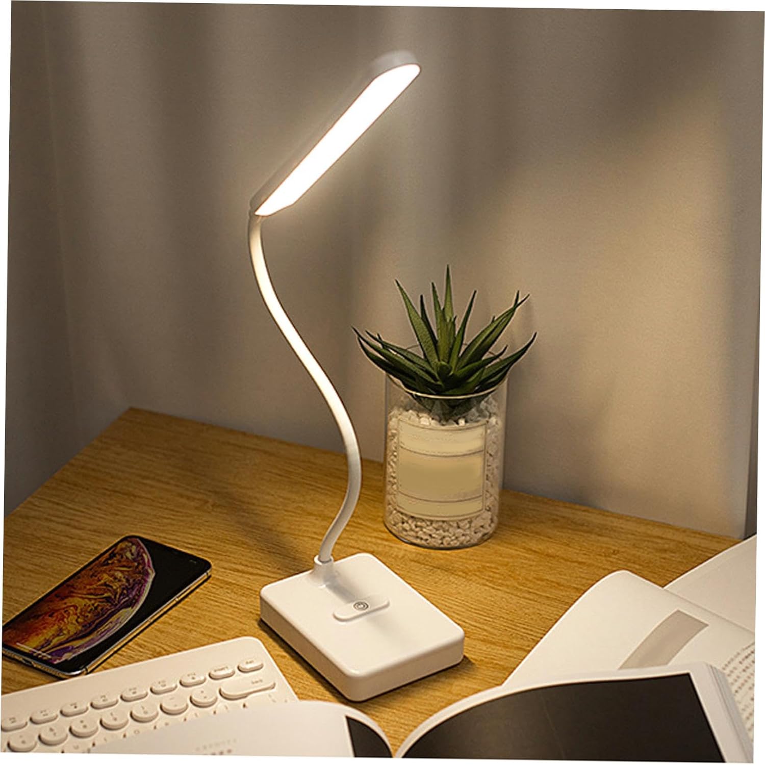 Flexible desk lampDescription: press to adjust the brightness with a and quick response, allowing for different brightness levels to meet individual needs. for reading, studying, or working with adjustable brightness.