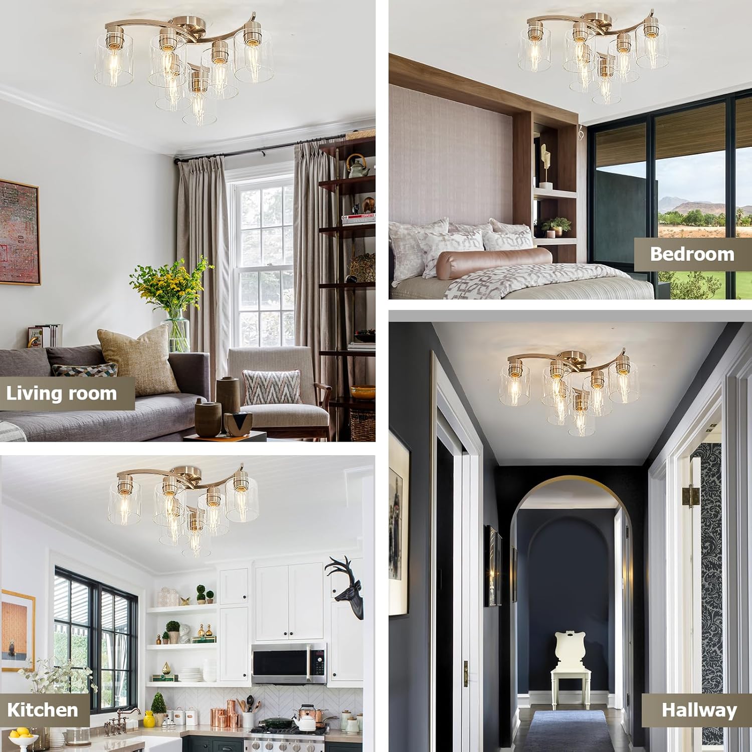 【Wide application】The semi flush mount ceiling light is suitable for bedroom, kitchen, hallway, foyer, living room, office, study, bathroom, bookcase, porch, balcony, gazebo, etc.