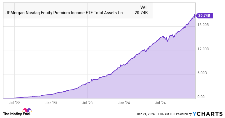 What if I told you that one of the largest income-focused exchange-traded funds (ETFs) on the market today combines rich yields with impressive fund-price gains? The JPMorgan Nasdaq Equity Premium Income ETF (NASDAQ: JEPQ) checks both of those shareholder-friendly boxes — and many more.