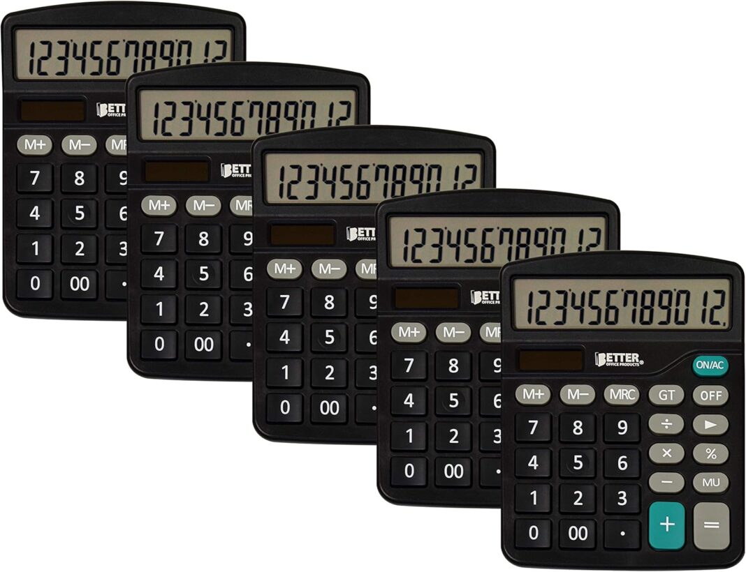 5-PACK – Handheld standard function electronic desktop calculators with auto-off two-way power, solar and AA battery (included), large (5/8″ x 1/2″) 10-key buttons, and grand total (GT) button. Remove protective wrap from battery in chamber.