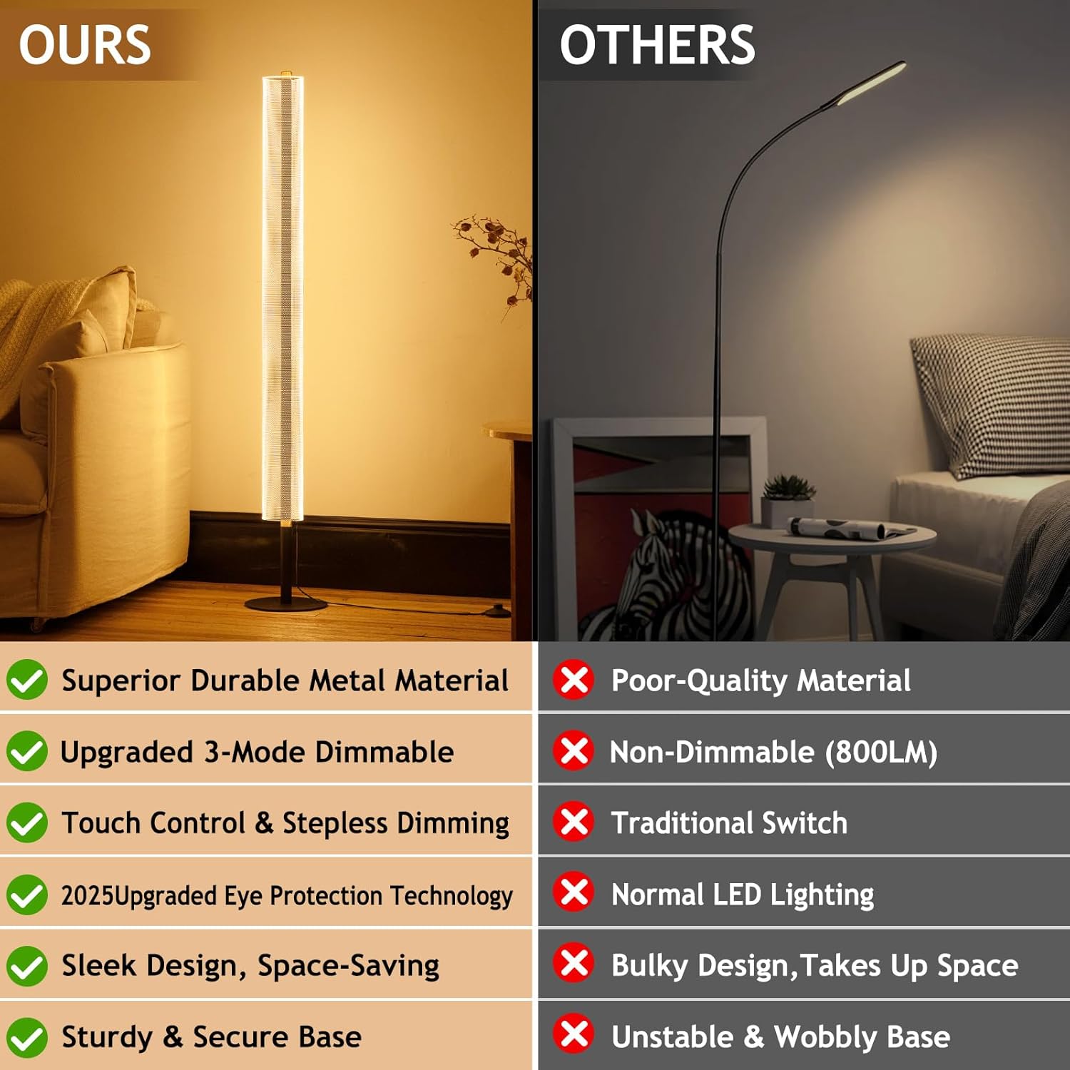 【Quality construction】The aluminium lamp body with gold iron base in a frosted cylinder shape have been crafted with quality material in an intuitive design for a sturdy and elegant lighting solution. Our touch floor lamp is perfect for use in your home or office.