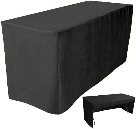 4 Less Co 6′ Fitted Tablecloth Table Cover Trade Show Event Open Back Side – 3 Sided Black