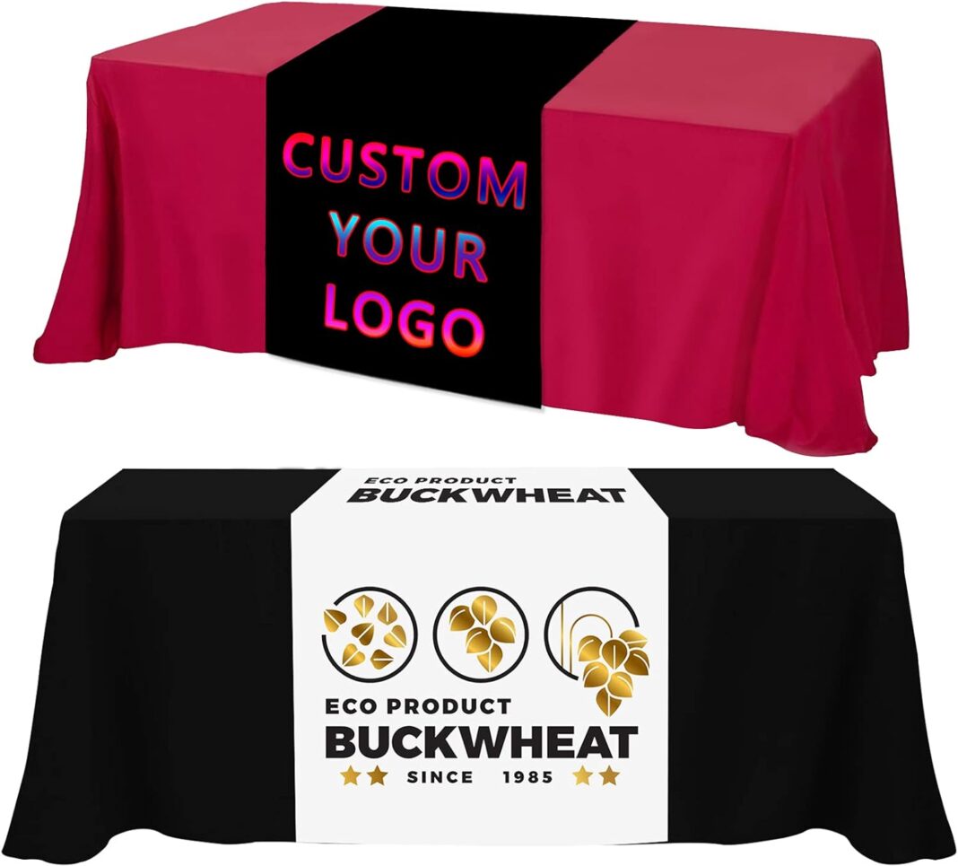 HD High Quality Printing – Custom tablecloth logo, printed on one side. One side has a custom graphic and the other side remains in its most natural, original form. You can customize it with any image and text you want!