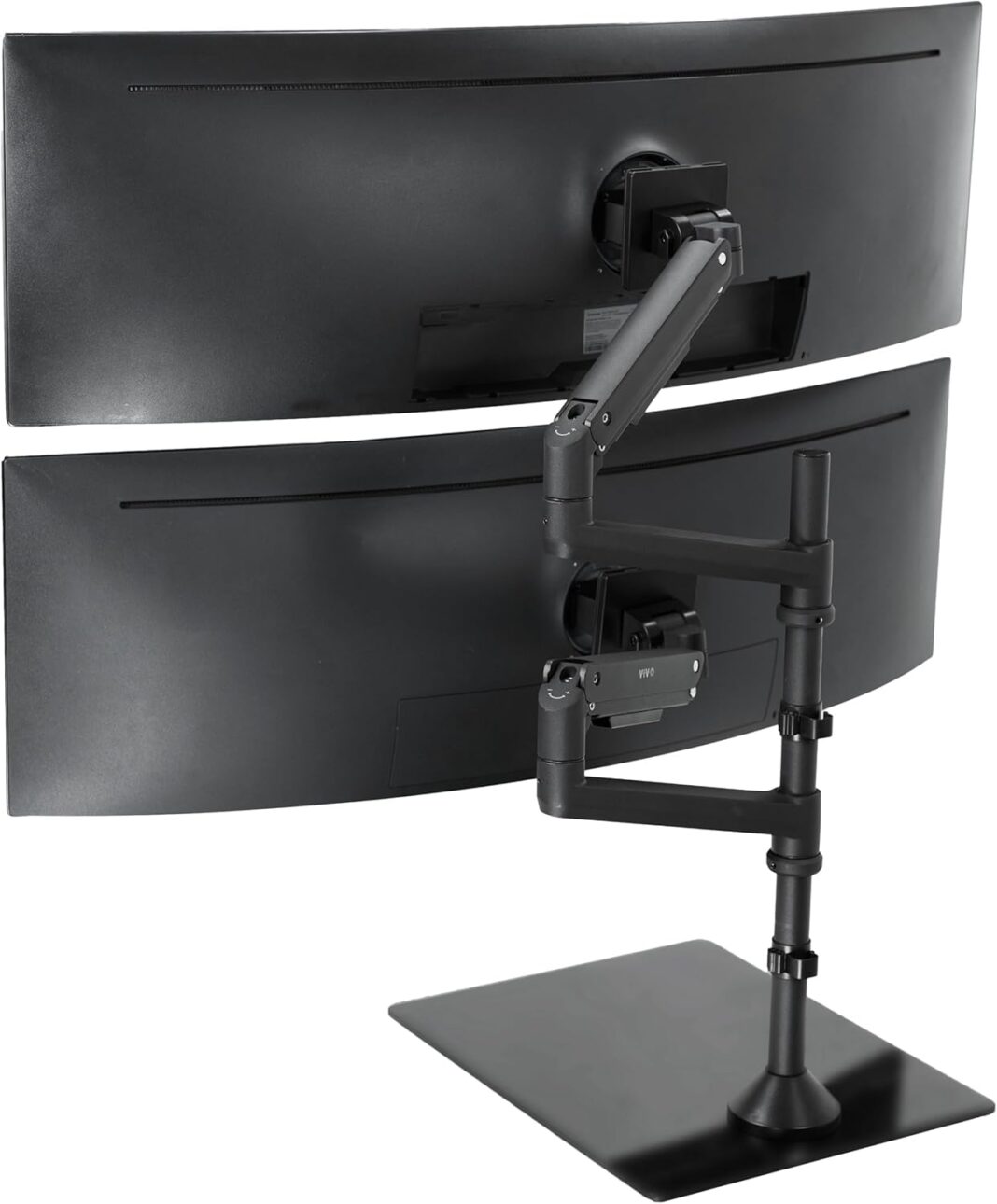 Dual Ultrawide Desk Stand: Fits 2 ultra-wide screens up to 49” (stacked) or 38” (side-by-side) with VESA 75x75mm or 100x100mm mounting holes. Holds up to 30.8 lbs in weight per arm