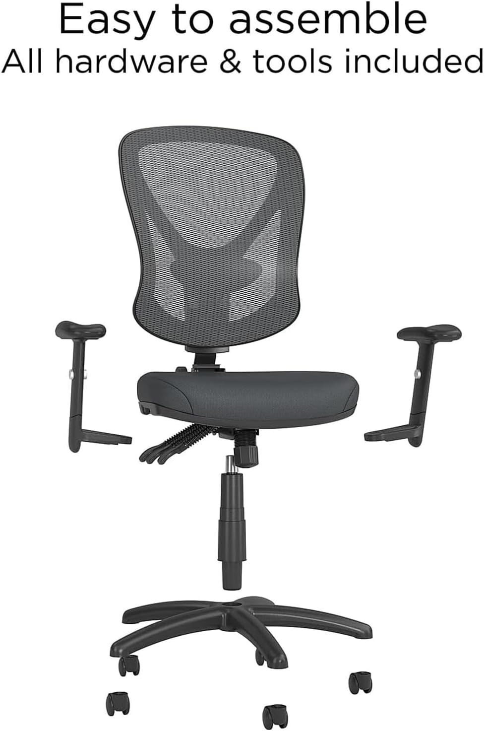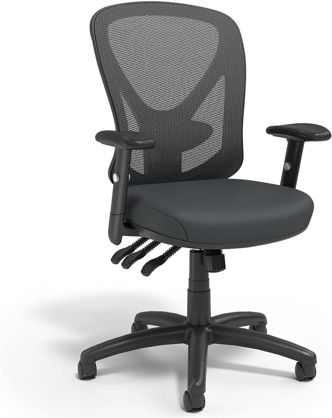 EASILY ADJUSTABLE: Adjustable tilt tension and tilt lock let you find an ideal seating angle, and height adjustment options make it easy to find the proper configuration for your desk. Plus, each arm on this desk chair adjusts height for ultimate comfort.