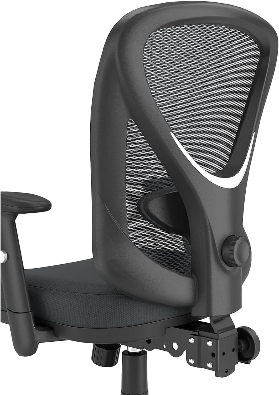 The molded back features a slight curve that serves as lumbar support, while the adjustable seat and arms let you find the perfect configuration for your body.