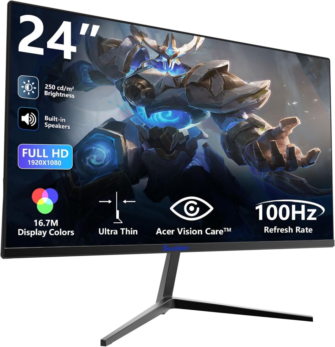 Crystal-Clear Visuals: This 24 inch monitor by Sealan boasts a stunning FHD 1920 x 1080 IPS panel delivering over 16.7 million accurate colors with 99% sRGB wide color gamut. Dive into vivid, detailed visuals with exceptional color accuracy and consistency from all angles.