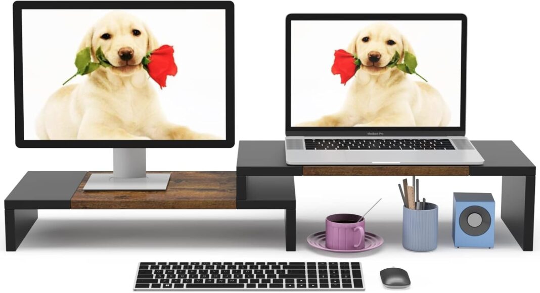 ❤Computer Monitor Riser: This dual-monitor stand features a sturdy construction black with a rustic brown wood finish for an added rustic and unique look.