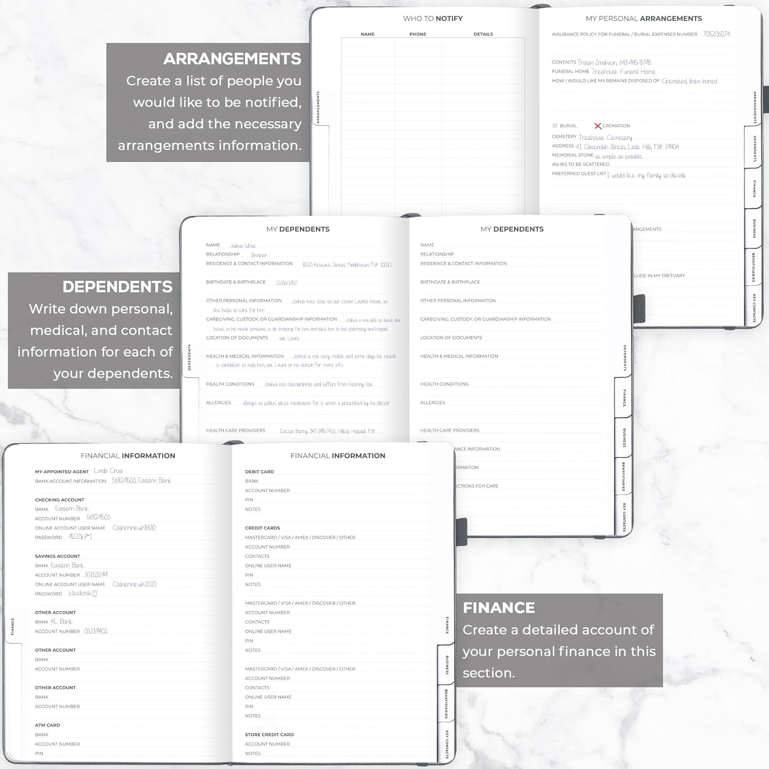 PREPARE DETAILED INSTRUCTIONS TO GUIDE YOUR LOVED ONES: This guided final arrangements planner is an easy-to-use tool for organizing all essential personal information, from medical data to passwords and financial records.