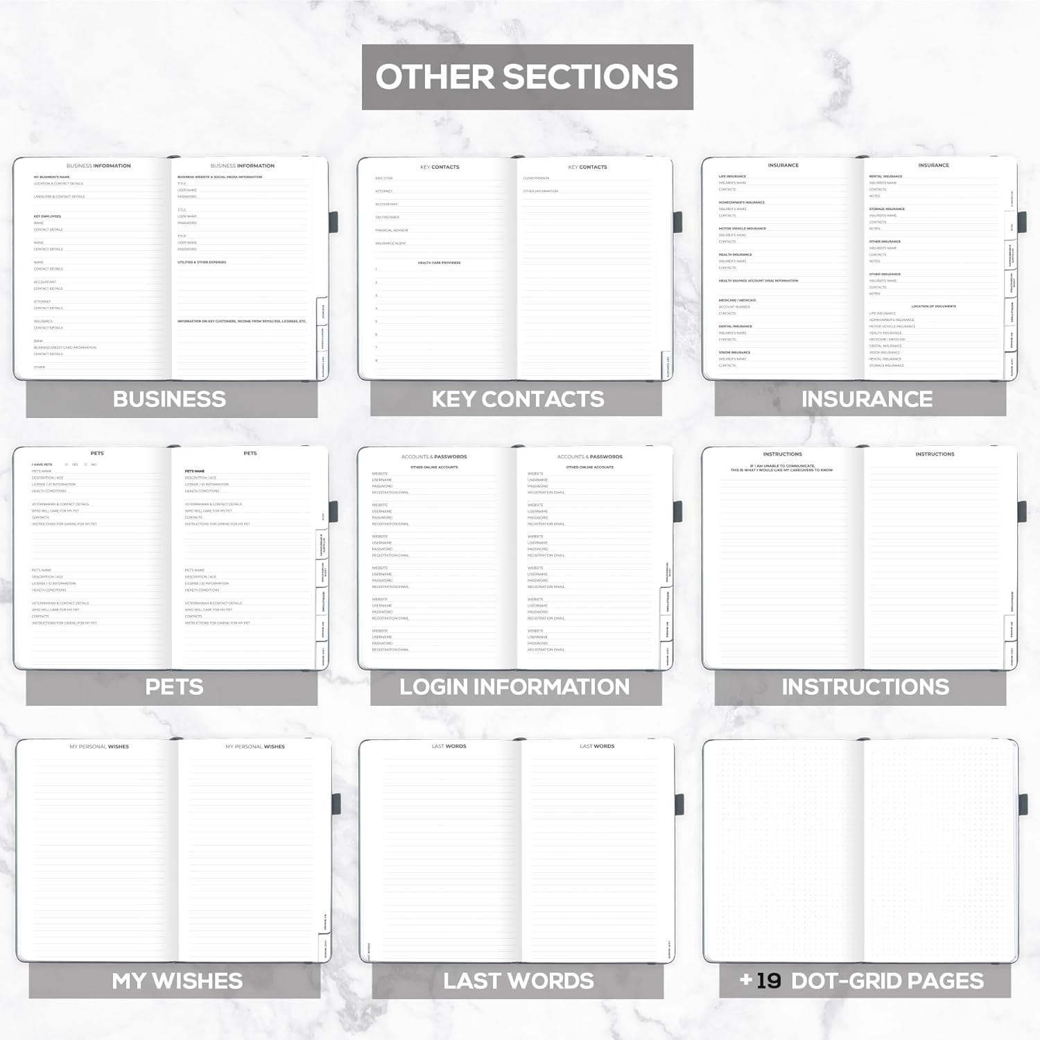 COMPREHENSIVE AND EASY-TO-COMPLETE TO SAVE YOUR TIME: This end of life planning book has 16 sections to create a comprehensive record of all necessary information and instructions. The layout is easy to follow and fill out to avoid any misunderstanding.