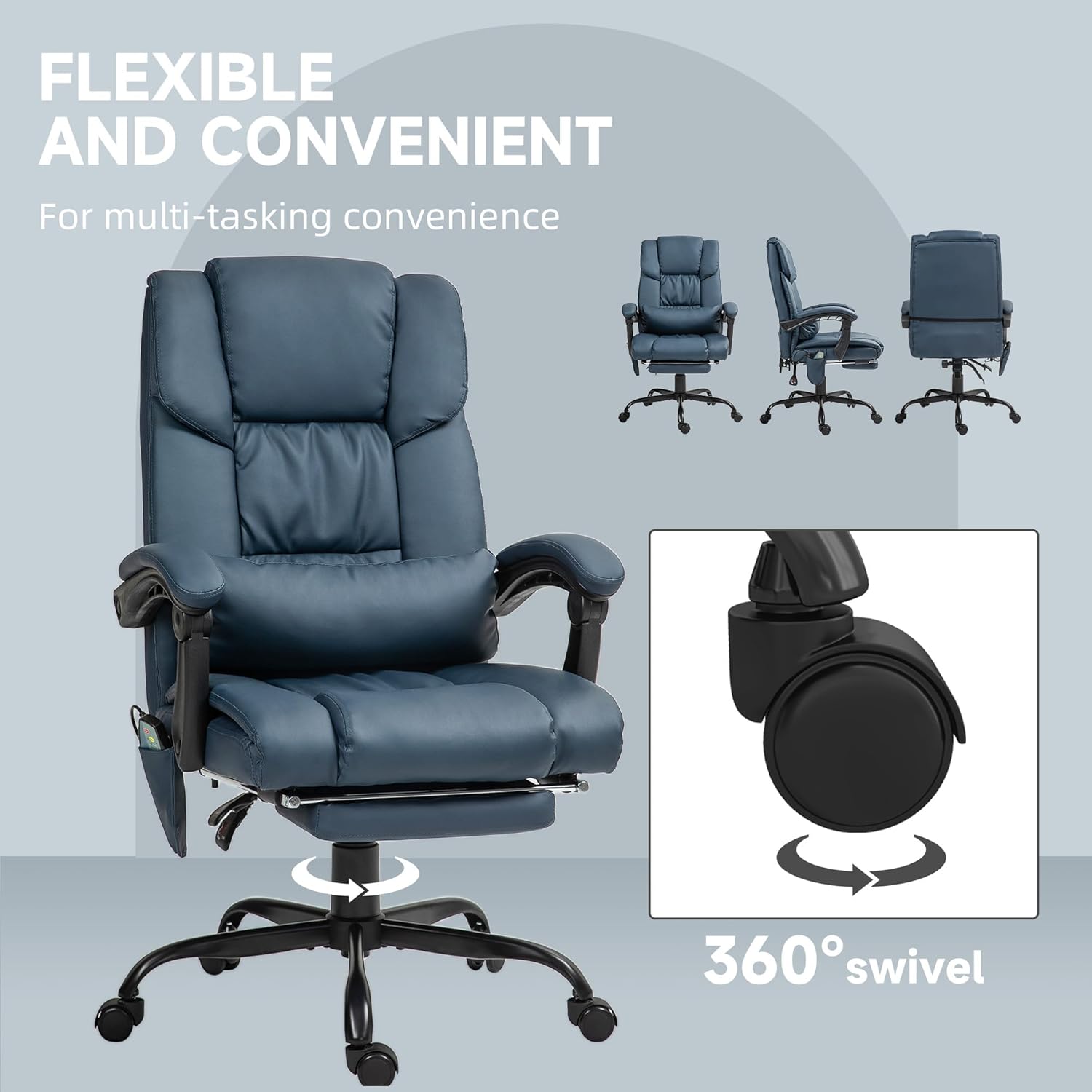 Give yourself a professional-feeling massage in your own home with this ergonomic chair from Vinsetto. Presented in executive design, the faux leather office chair has six different massage points: two on the shoulders, two in the lower back, and two on the thigh area. Height can be adjusted via the lever below the work chair. The back angle can be adjusted up to 130 degrees, with a footrest that can be smoothly pulled out for extra relaxation.