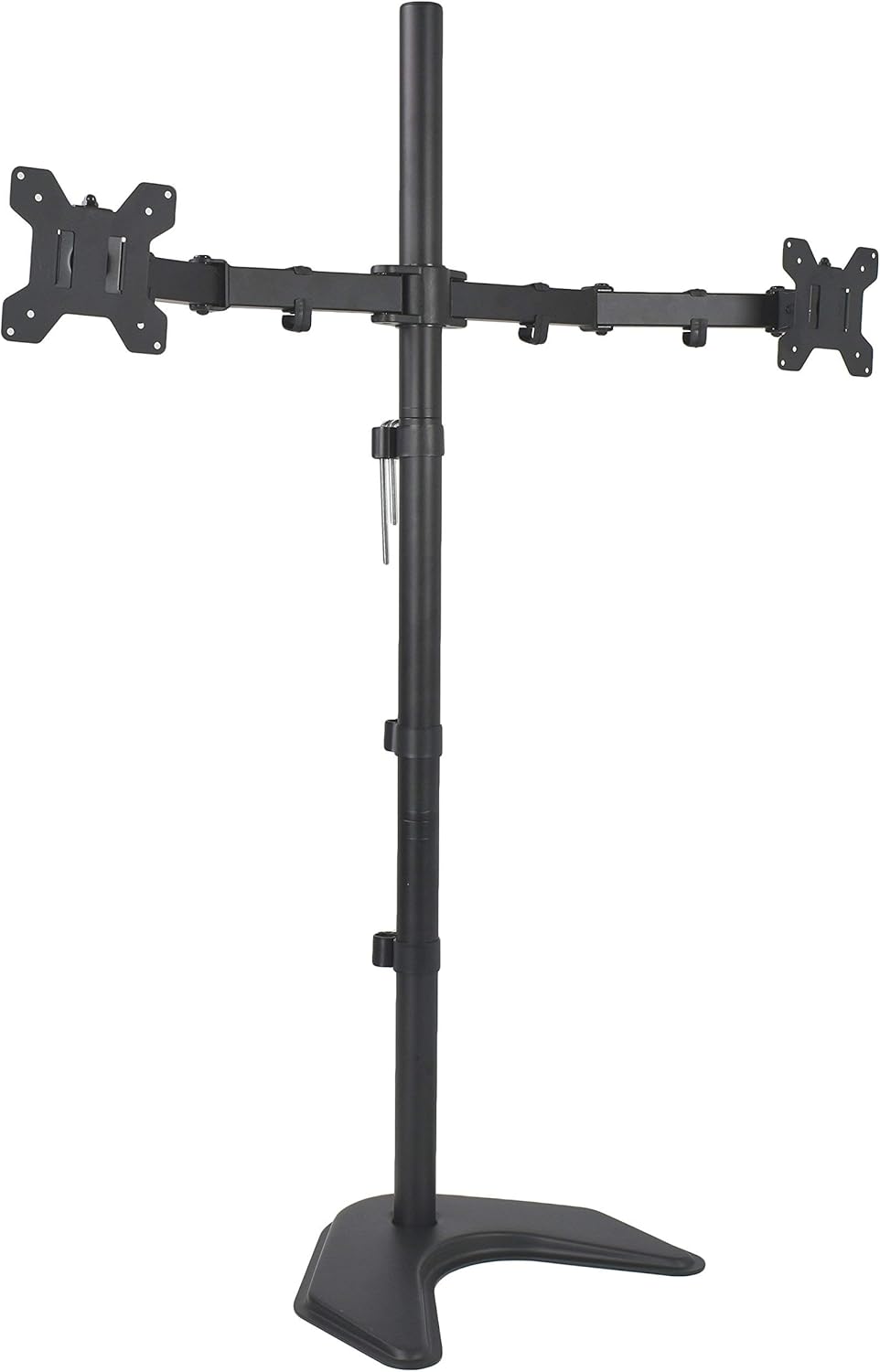Complete your office space with a dual free-standing monitor mount from VIVO. Clear up workspace on your desk and enjoy the benefits of standing while working with this extra tall monitor stand. The 40″ center pole and adjustable computer screen height allow the user to adjust to either a sitting or standing position. High-grade steel and aluminum along with a heavy-duty base ensure your monitors will be kept secure. Mounting brackets are VESA compatible and support the majority of monitors on the market.