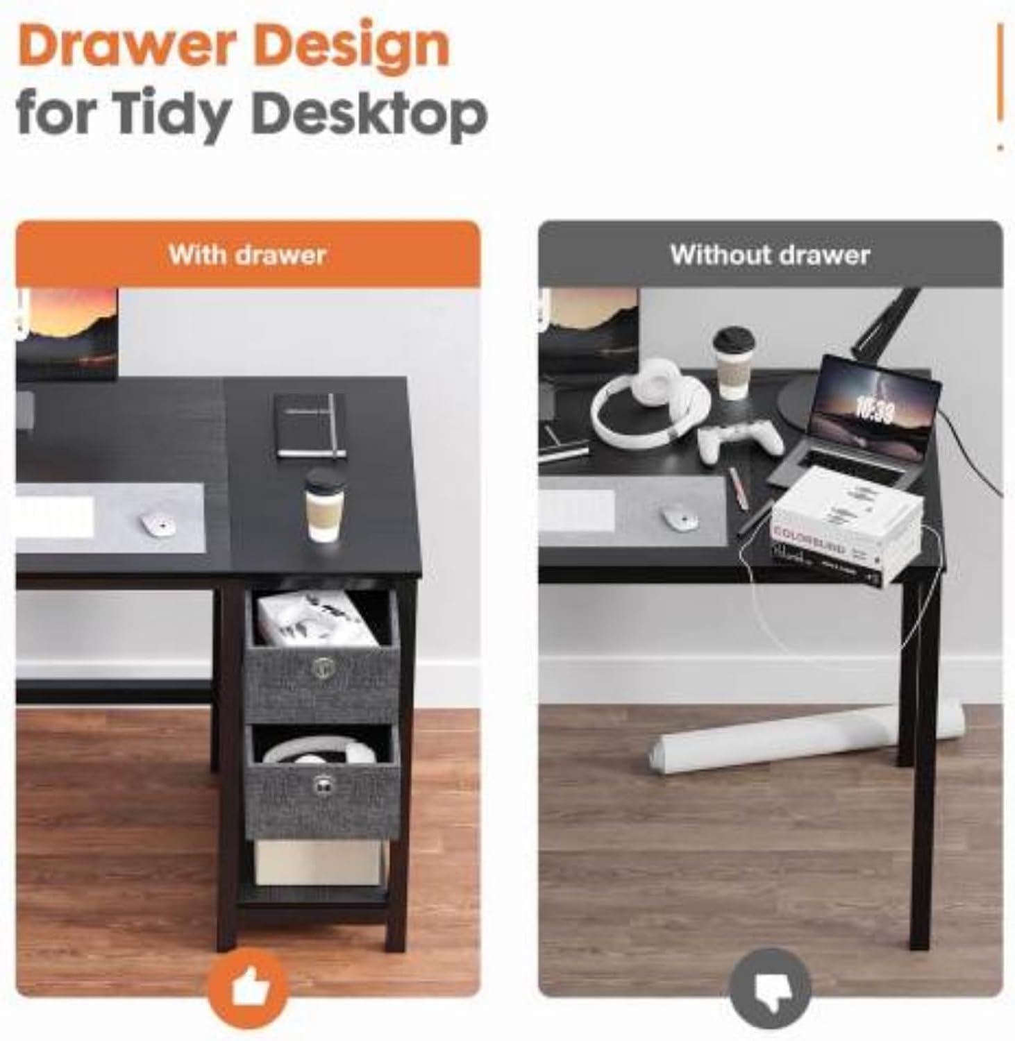 This desk with drawers has a large desktop and is made of high-quality particleboard that is easy to clean. These computer desks are designed with 2-layer drawers and shelves, and the beautiful cloth drawers are removable, so you can replace them as needed. Our computer desks are stylishly designed, and it can match all decoration styles.
