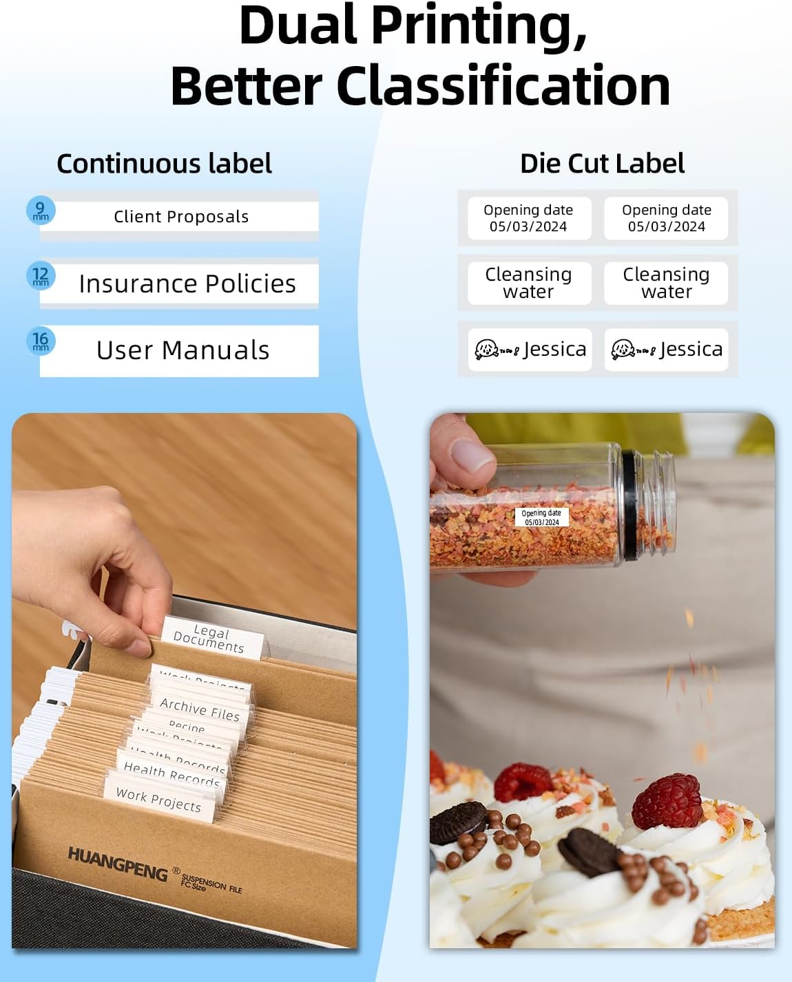 Multiple Options: Our label makers are available in different colors and 2 DPI resolutions: 203 DPI and 300DPI. Our 0.63″ sticker tapes come in different cute colors, too