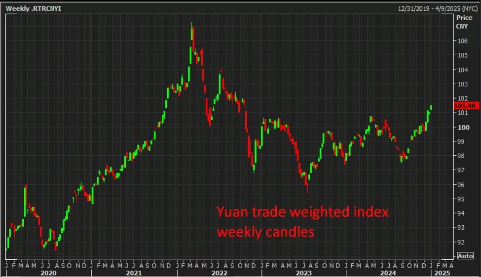 - The index is calculated based on a basket of currencies representing China’s key trading partners.