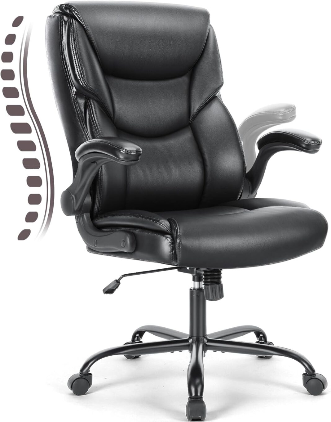 Material – The executive office chair is made of upholstered, carefully-selected PU+PVC imitation leather material that is waterproof and resistant to stains, easy to wipe clean, and filled with high-density sponge padding for a natural leather look for an upscale look.