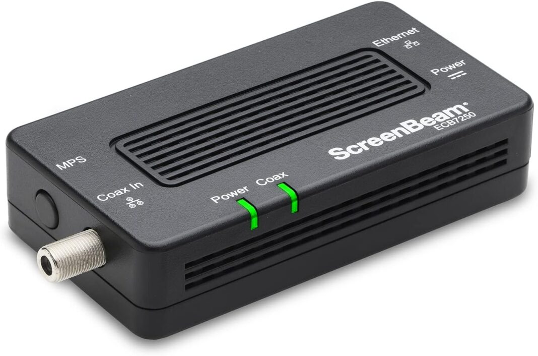 ScreenBeam’s ECB6200 Bonded MoCA 2.0 Network Adapter features a 2.0 Gigabit Ethernet port, delivering up to 2.0 Gbps In and 2.0 Gbps Out capabilities, giving you all the extreme high-speed bandwidth you need for flawless streaming of HD video, pristine online gaming, and all of your other demanding high-bandwidth applications. Experience an instant boost to network speeds with an extremely fast and reliable wired connection over your existing coax wiring. Plug and Play installation is as simple as it gets.