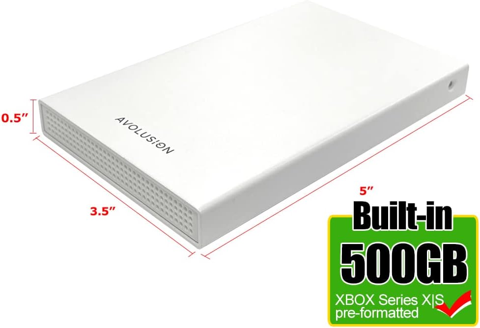 Avolusion Portable Storage System (HD250U3-WH) 500GB Ultra Slim 2.5″ SuperSpeed USB 3.0 Portable External Gaming Hard Drive for XBOX Series X|S (White) is designed to attract the eyes of user at a glance with durable aluminum chassis external gaming hard drive. The Avolusion HD250U3-WH 500GB endeavors top quality design in durable aluminum case, with slim trimming, which make the Avolusion HD250U3-WH 500GB Slim USB 3.0 External Gaming Hard Drive a fine piece of storage device on your palm.