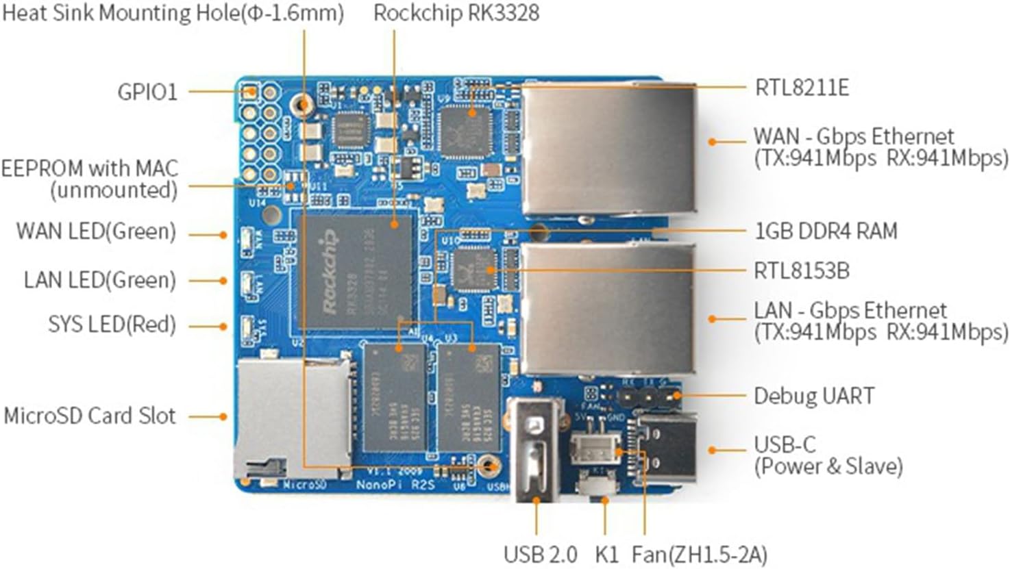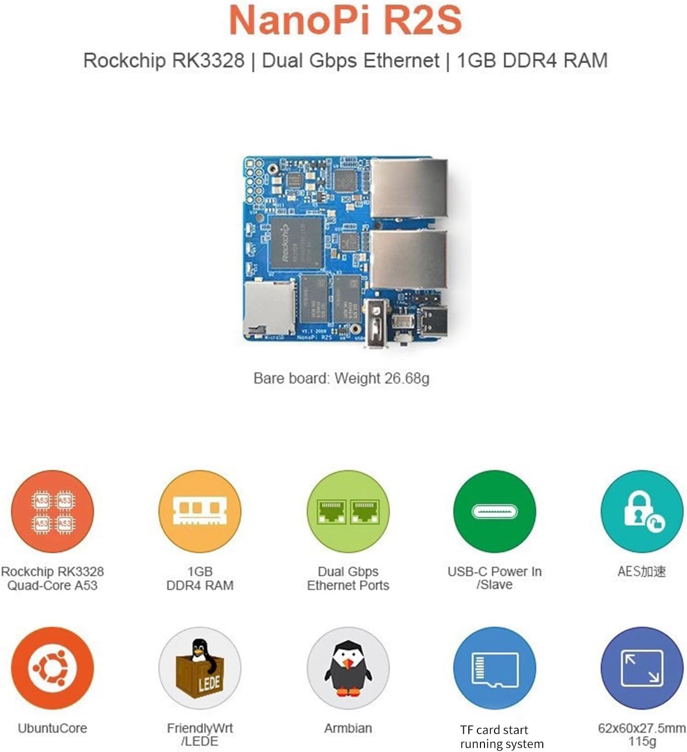 for NanoPi R2S Open Source Mini Router with DualGbps Ethernets Ports for IoTsNAS OpenWrt/LEDE Board for NanoPi R2S 1GB DDR4 for NanoPi R2S Open Source Mini Router High Speed Mini Router with DualGbps Ethernets Ports for IOTs NASHome Gateways