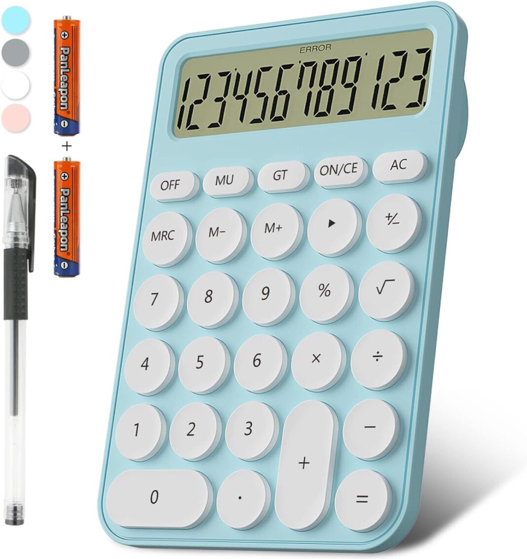 Sleek and stylish design: Made with ABS material and a candy design button, this battery-powered desktop calculator adds a touch of elegance to any office environment. (Provide 2 AAA batteries, only need to use 1 AAA battery ).