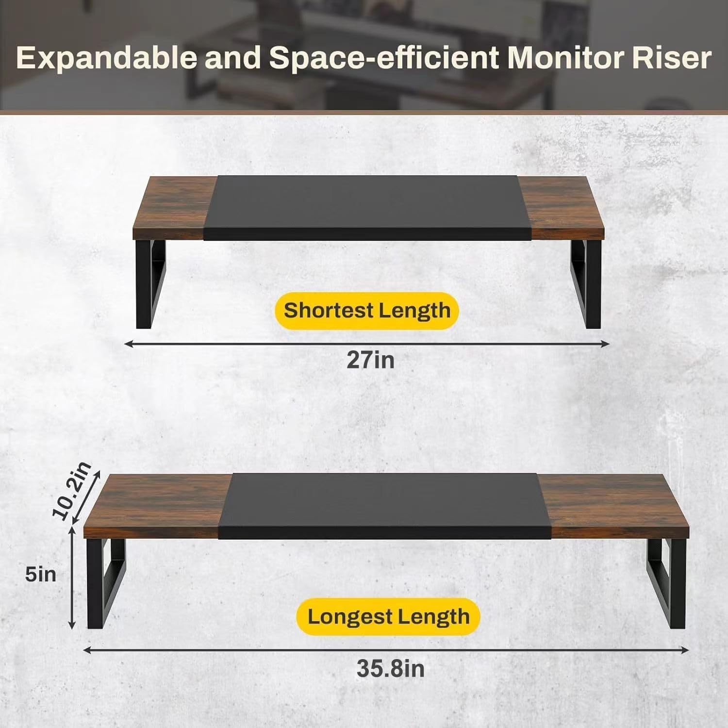 Versatile and Adjustable – Elevate your workspace with the SYDWORKSHOP monitor stand, boasting a flexible length adjustment from 27” to 35.8”. This adaptability allows it to accommodate a wide range of monitor sizes and setups, ensuring your setup is just right.