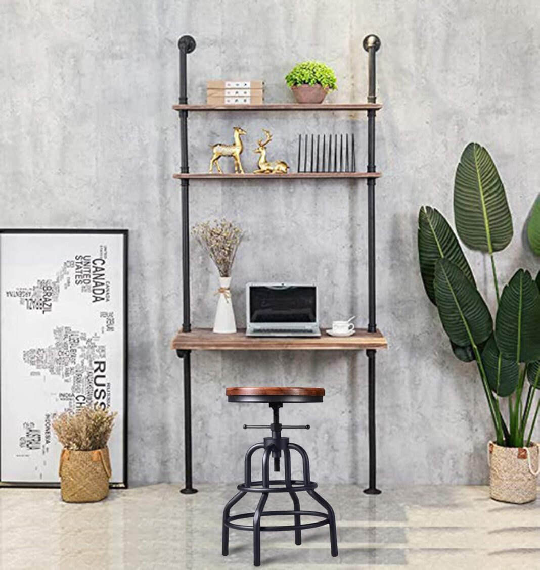 DIY Industrial Retro Wall Mount Iron Pipe Laptop Computer Desk with Storage Shelving Bookshelf