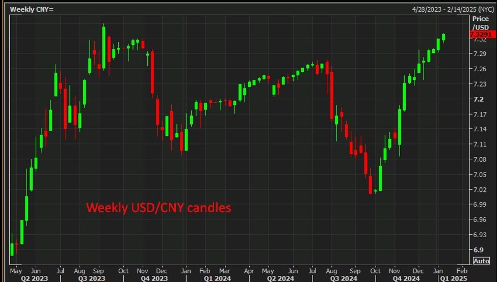 China is resisting market pressures to allow the yuan to weaken, viewing the potential downsides as outweighing the benefits. While the yuan depreciated 2.8% against the dollar in 2024, its trade-weighted renminbi index rose 4.2%, suggesting it remains relatively strong compared to other currencies that have fallen sharply against the U.S. dollar.