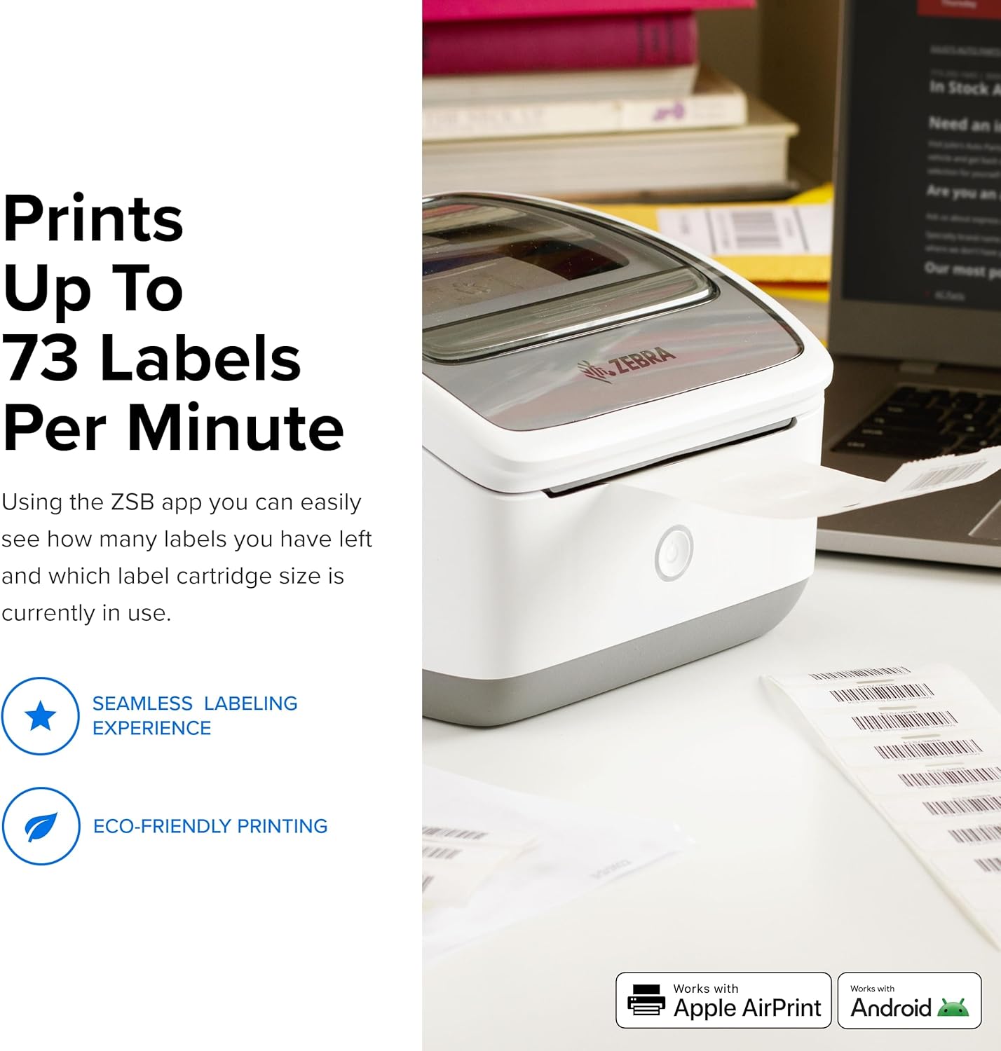 Works Exclusively With Zebra Label Cartridges: Drop in a Zebra cartridge, and the printer auto-calibrates for seamless printing. Enjoy easy setup and reliable performance with minimal jam risk. Our compostable cartridges ensure sustainability and quality