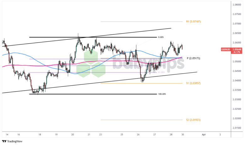 GBP/AUD tested key technical support around the 61.8% Fibonacci level and S1 Pivot Point (2.0400), where buyers stepped in decisively, confirming our technical analysis. The pair then rallied strongly, breaking through the pivot level (2.0520) and moving toward R1 (2.0720) after the U.K. budget news.
