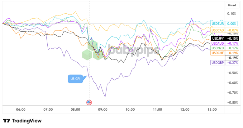 However, the currency appeared to bottom out roughly an hour after the report was printed, as market analysts raised questions on the data’s reliability. The dollar soon trimmed losses against GBP (-0.27%) halfway into the U.S. session while erasing post-CPI declines against EUR (0.00%) and CAD (-0.07%).