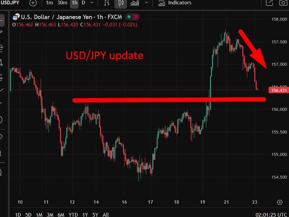 The Japanese yen continued to strengthen on Tuesday, with the USD/JPY pair sliding below the 156.50 mark, as officials in Tokyo stepped up warnings about “one-sided” and “sharp” currency moves and signalled a readiness to act if volatility becomes excessive.