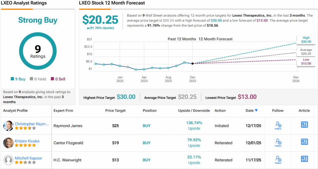 That bullish view is shared across the Street. LXEO carries a unanimous Strong Buy consensus rating, with all 9 analysts rating the stock a Buy. The stock is currently priced at $10.56, and its $20.25 average price target points to a ~92% gain in the next 12 months. (See LXEO stock forecast)