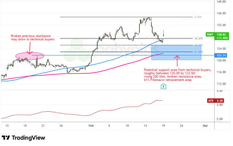1. If WMT holds the recent $125-$128 zone, it sets up a potential higher low and continuation pattern