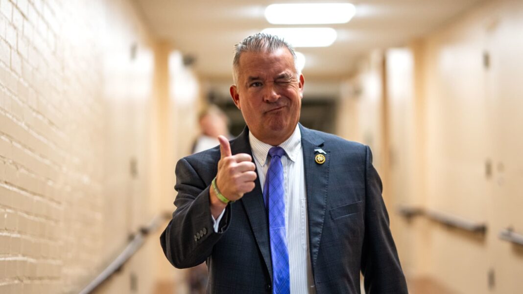 Rep. Don Bacon (R-Neb.) gives a thumbs up as he arrives for a House Republican Conference meeting at the U.S. Capitol on September 10, 2024 in Washington, DC.