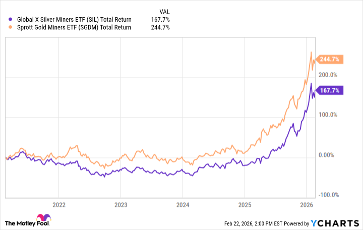 The Global X – Silver Miners ETF (NYSEMKT:SIL) and the Sprott Gold Miners ETF (NYSEMKT:SGDM) offer concentrated exposure to mining companies, but their underlying focus diverges: SIL zeroes in on silver miners globally, while SGDM tracks gold producers primarily in the U.S. and Canada.